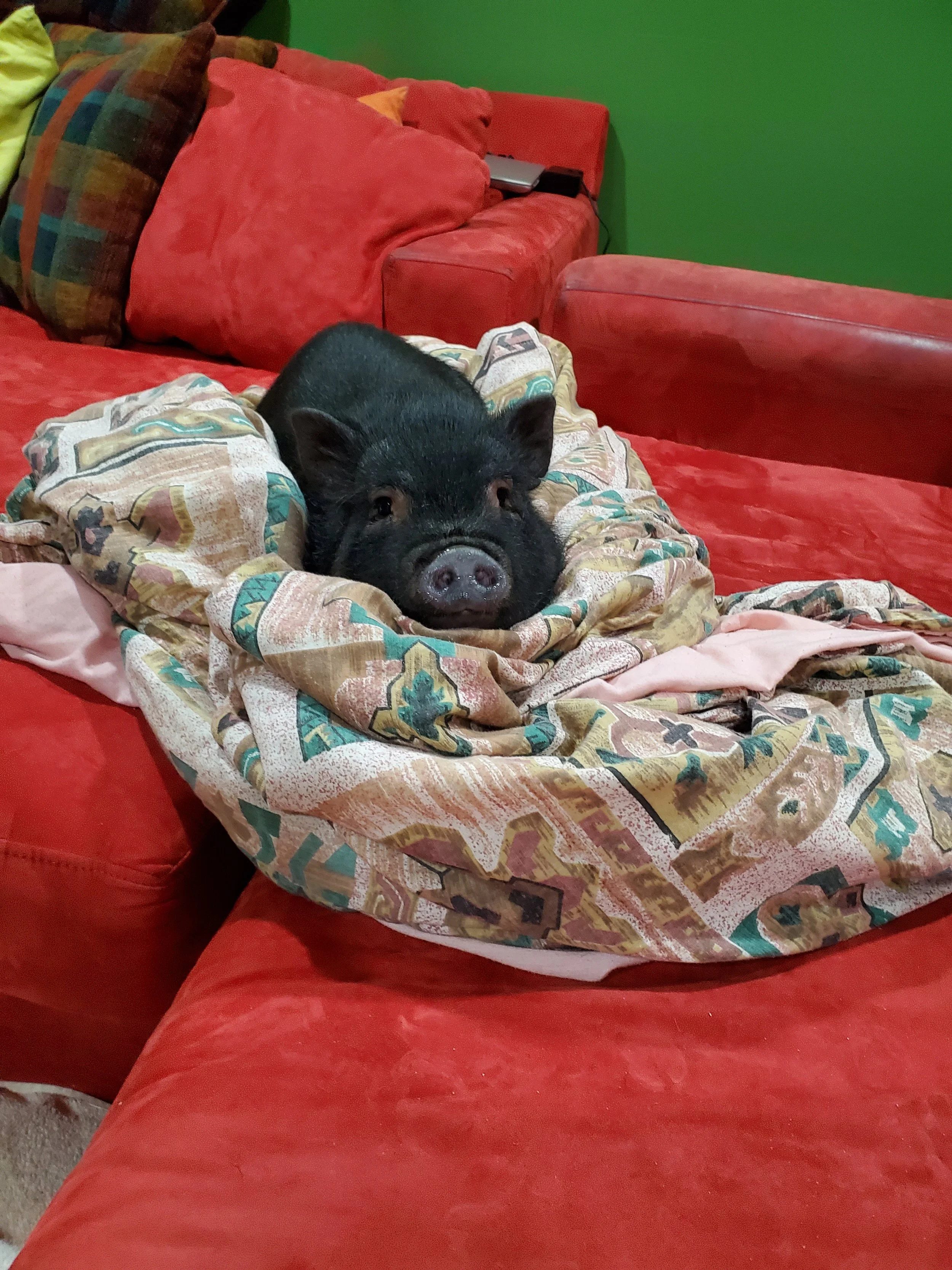 We love receiving updates from families who have adopted our piggies! Many people send us pictures and videos of their pig’s progress and we love sharing that with our prospective families!